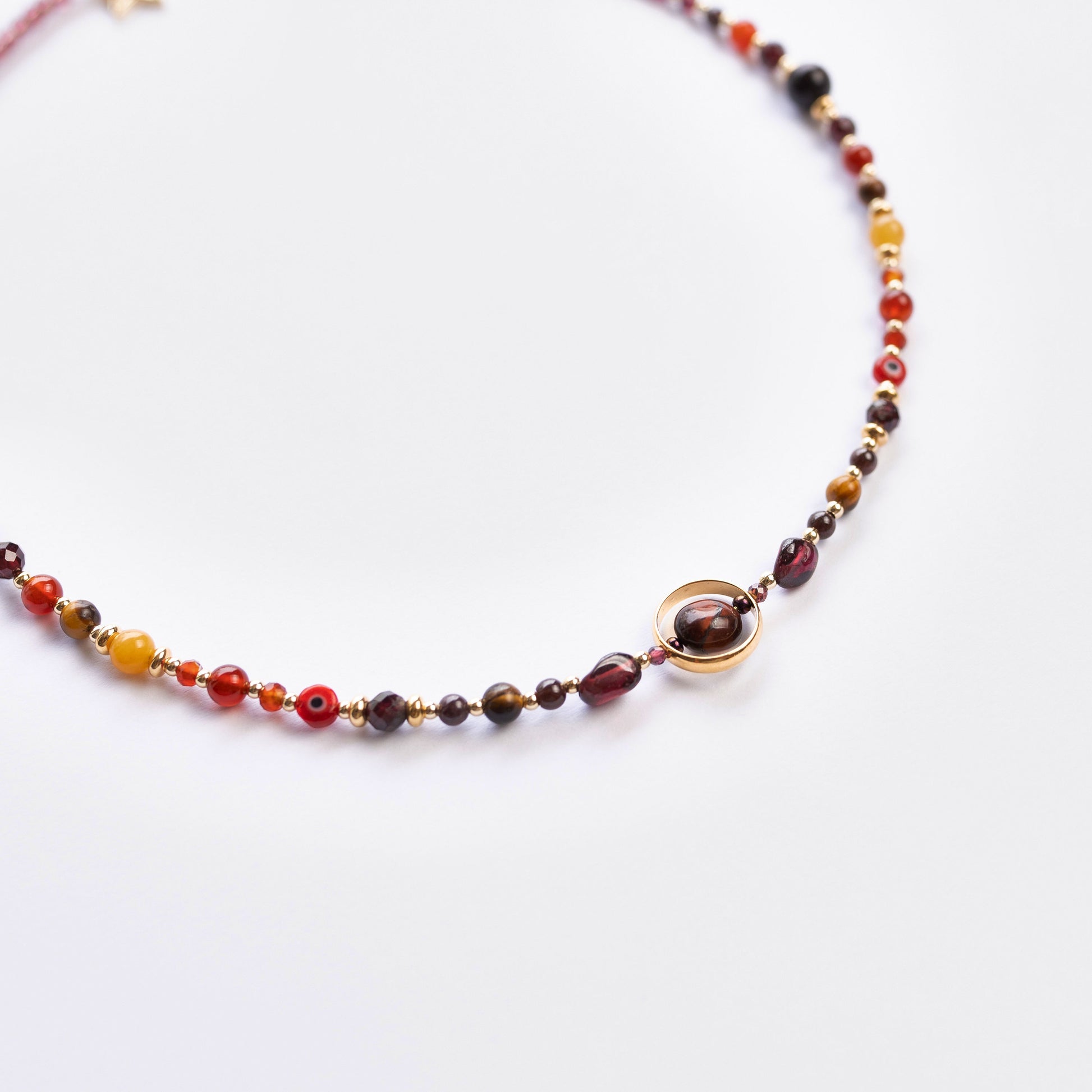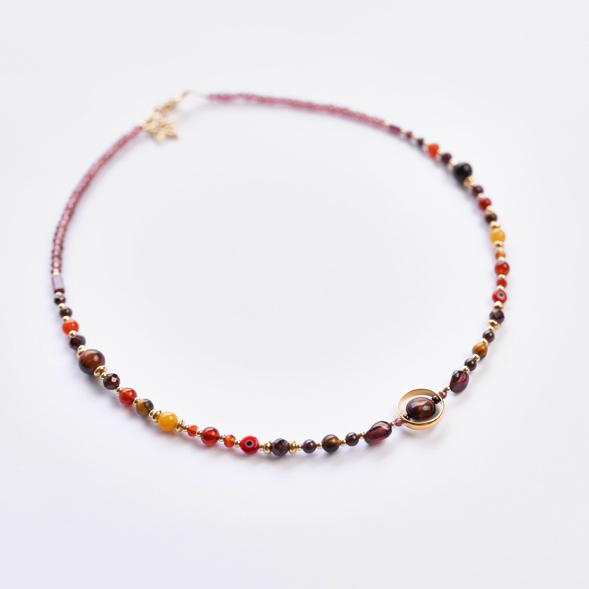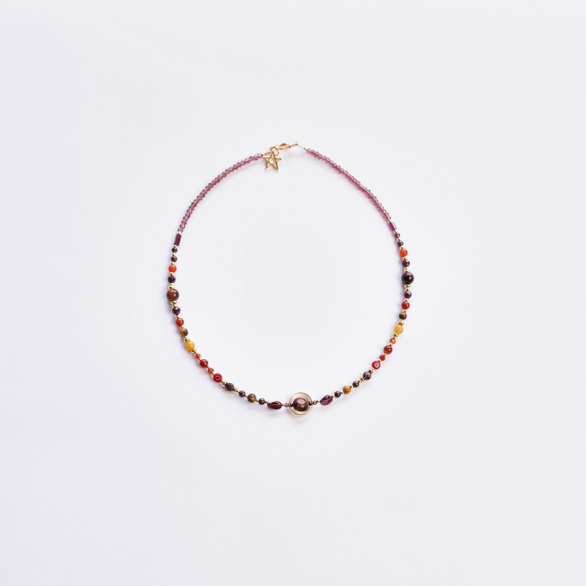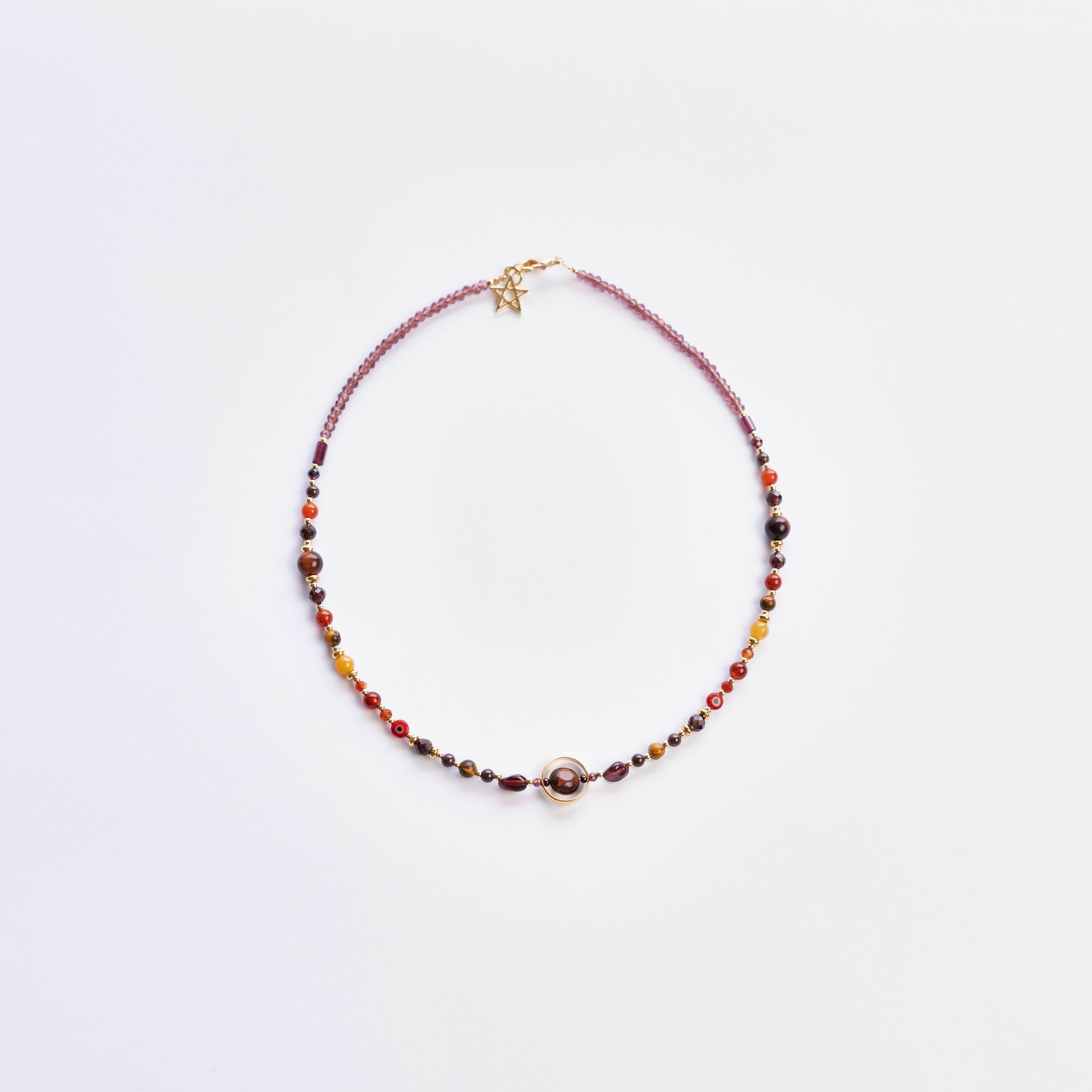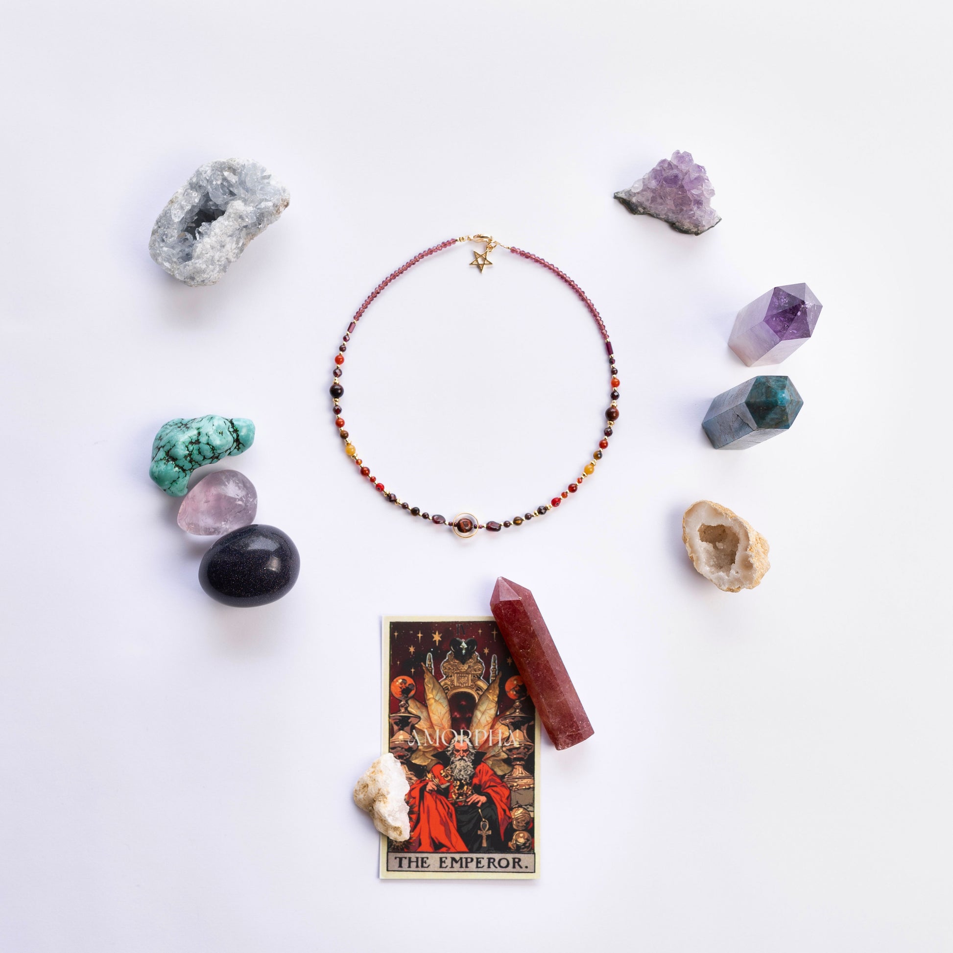 Parte de la Colección Tarot AMORPHA. Cada collar es único: las piedras naturales cambian, la intención permanece. Un diseño, muchas formas de llevarlo. Piedras naturales y oro laminado, creado con manos reales y mucho amor. Cada piedra fue elegida por lo que despierta, no solo por su belleza.