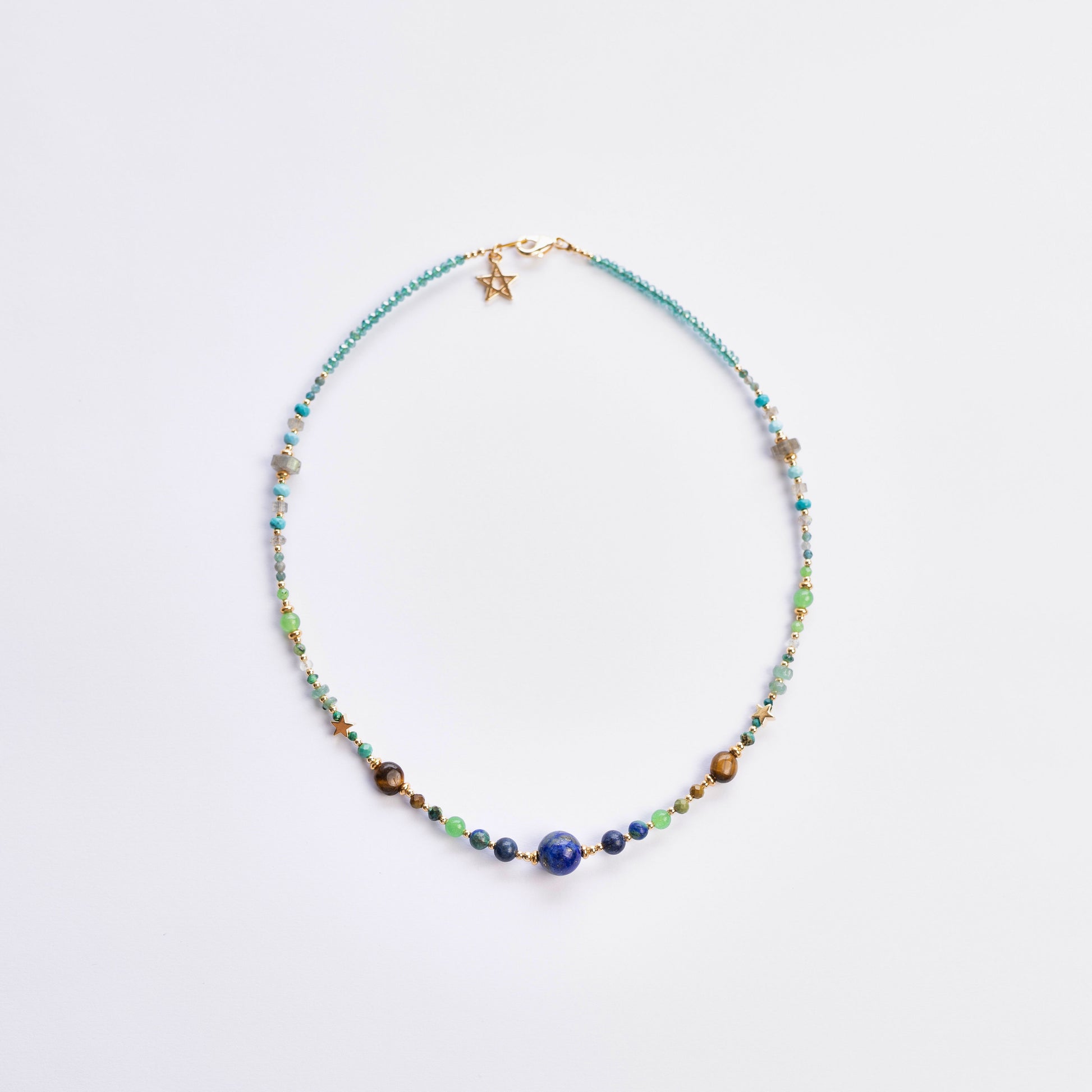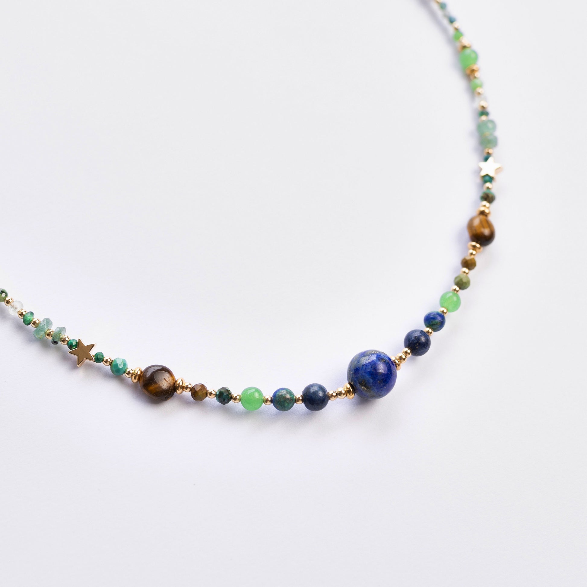 Cada piedra en este collar honra un aspecto de ese viaje: